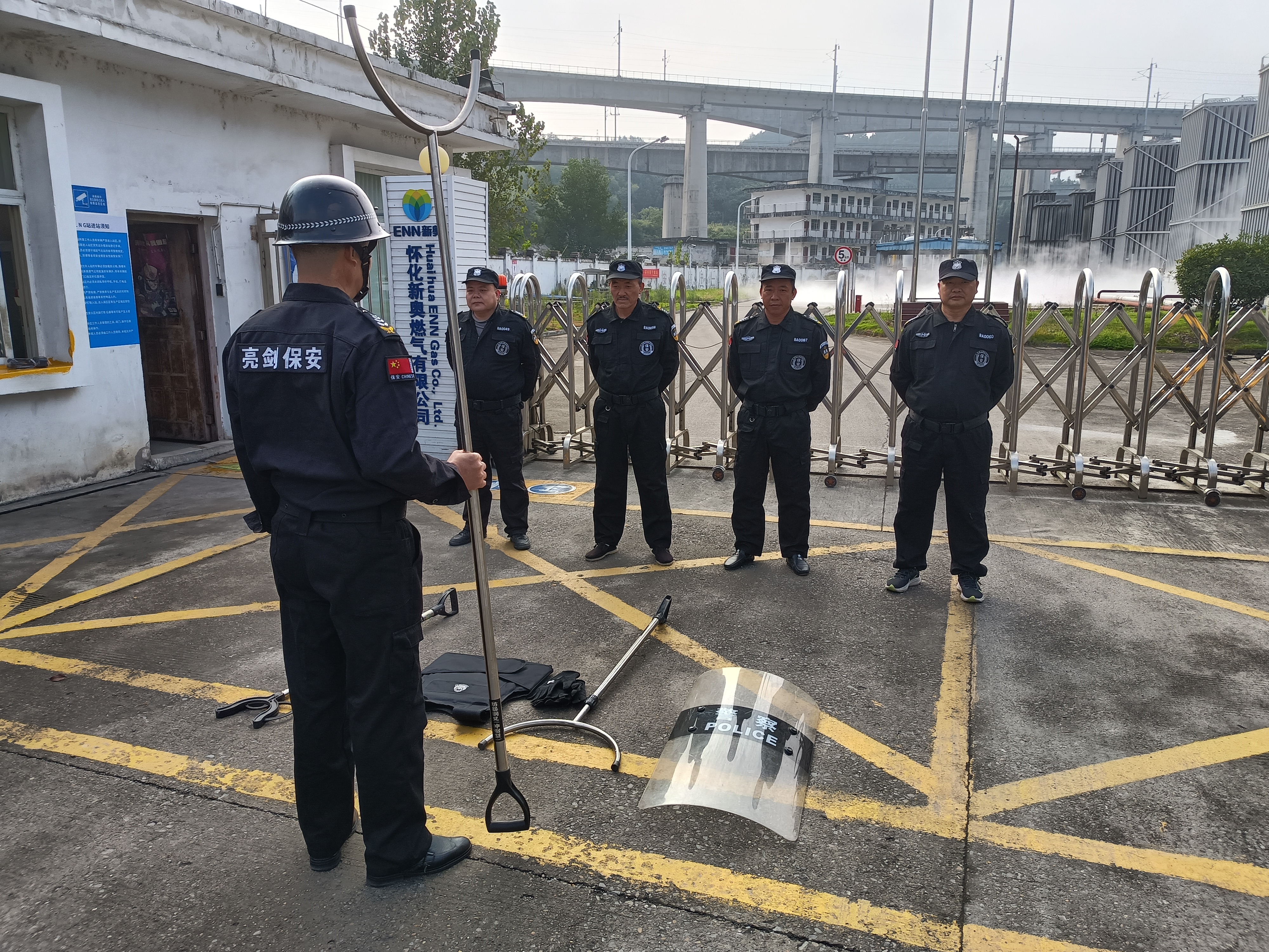 根據(jù)年度工作、培訓計劃,懷化亮劍保安服務有限公司于2023年10月10日對駐懷化新奧燃氣有限公司4名保安人員進行了為期一天的反恐防暴演練。