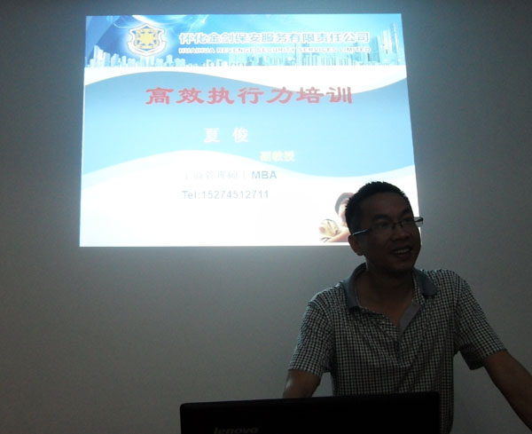 2015年5月29日上午,懷化金劍保安公司高薪聘請了工商管理碩士、懷化學(xué)院副教授夏俊老師在公司會議室為全體管理人員和部分班隊長主講了“高效執(zhí)行力”的培訓(xùn)講座。